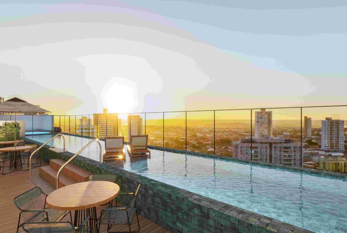 No Rooftop com Piscina Adulto / Infantil com Prainha, Hidro/Spa, Deck Seco, Apoio da Piscina, Salão de Festas, Academia, Lounge Bar, Terraço Descoberto.