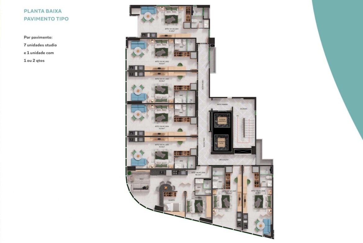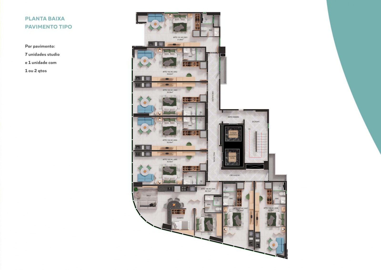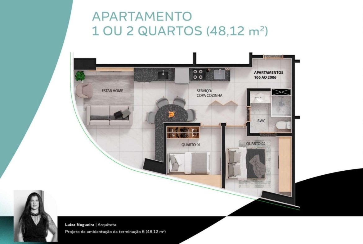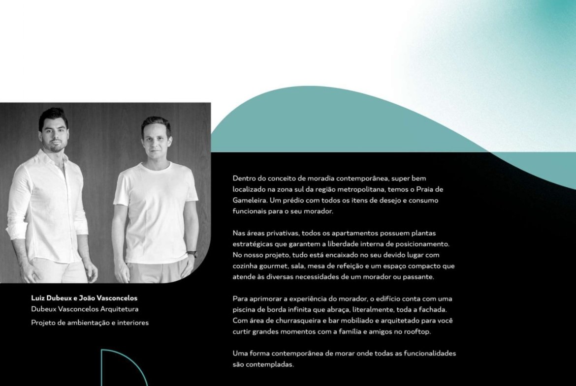 O Praia de Gameleira dispõe de studios de 24,80m² a 31,40m² e apartamentos de 1 e 2 quartos, com 48,12m², ideais para diferentes perfis de moradores e investidores. A possibilidade de personalização permite criar ambientes únicos, que traduzem seu estilo de vida.