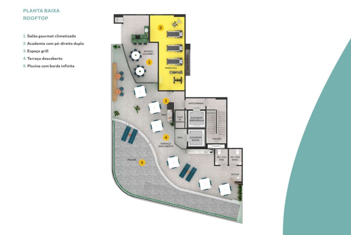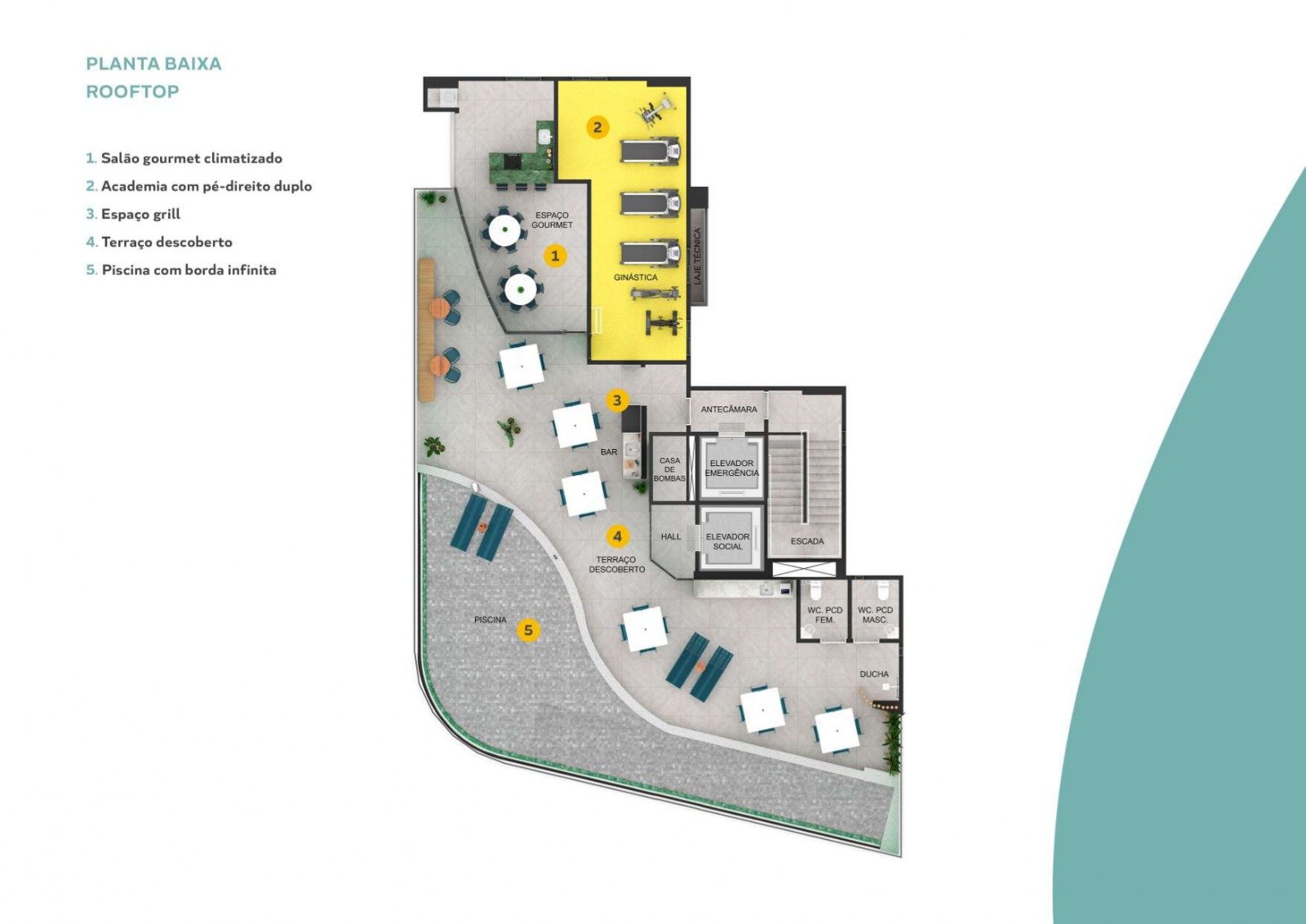 O projeto foi pensado para oferecer conforto e conveniência. O hall de acesso com portaria inteligente garante segurança. O pet place com área de banho cuida dos seus animais. Além disso, o salão gourmet, o espaço grill e o rooftop com piscina de borda infinita criam o ambiente perfeito para momentos especiais. A academia com pé-direito duplo incentiva uma rotina saudável, enquanto o coworking e a sala de reunião favorecem quem trabalha em casa.