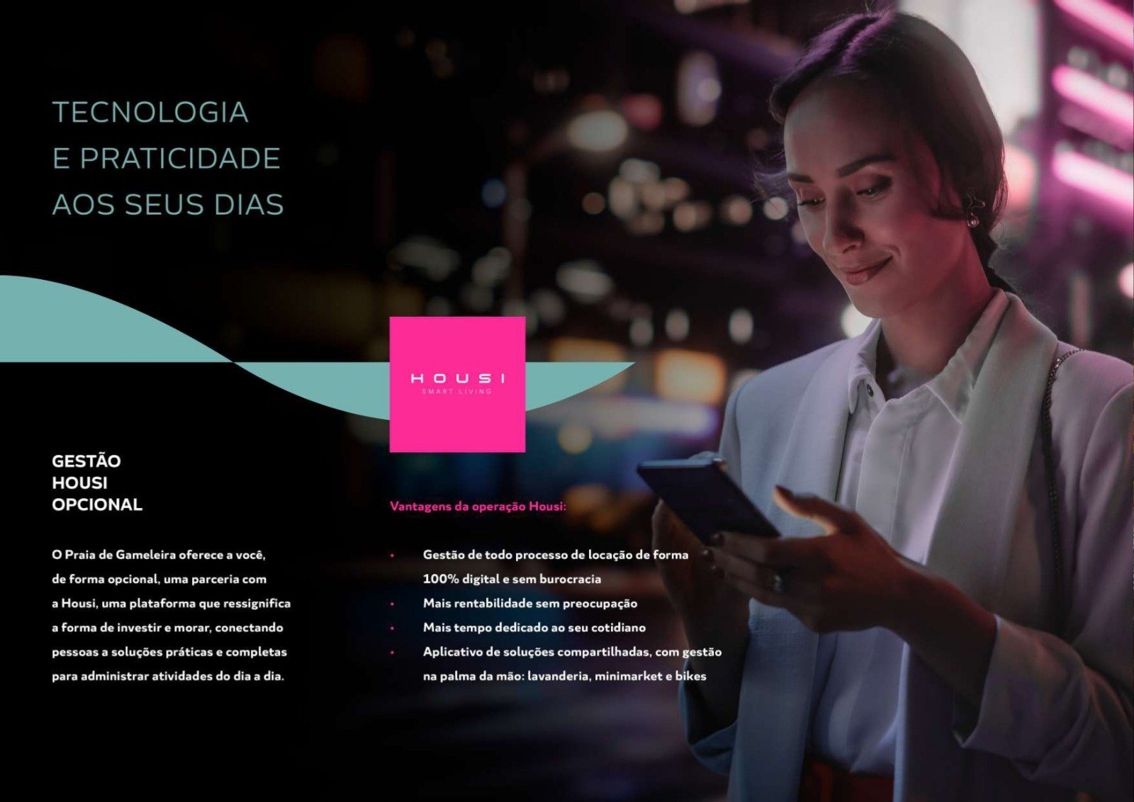 A parceria com a Housi Gestão garante praticidade para quem deseja investir. Com locação 100% digital, sem burocracia, você tem rentabilidade otimizada e serviços on demand, como minimarket, lavanderia compartilhada e concierge.