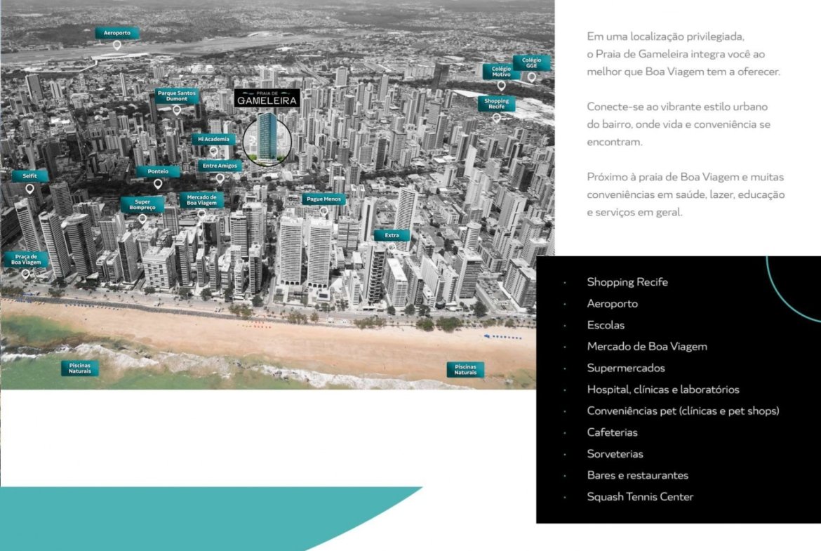 Pronto para Morar, o Praia de Gameleira significa ter tudo ao alcance. O empreendimento fica a poucos metros do mar, em um dos bairros mais desejados do Recife. Restaurantes renomados, supermercados, farmácias e escolas estão bem próximos, tornando o dia a dia mais prático. Assim, você aproveita o melhor de Boa Viagem, entre lazer, mobilidade e acesso rápido às principais avenidas da cidade.