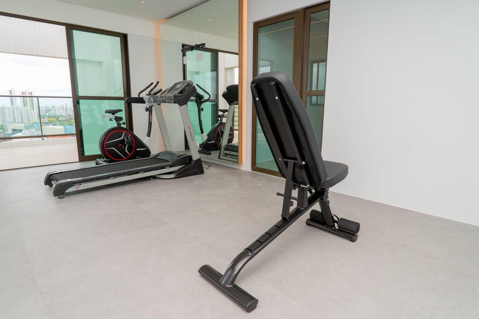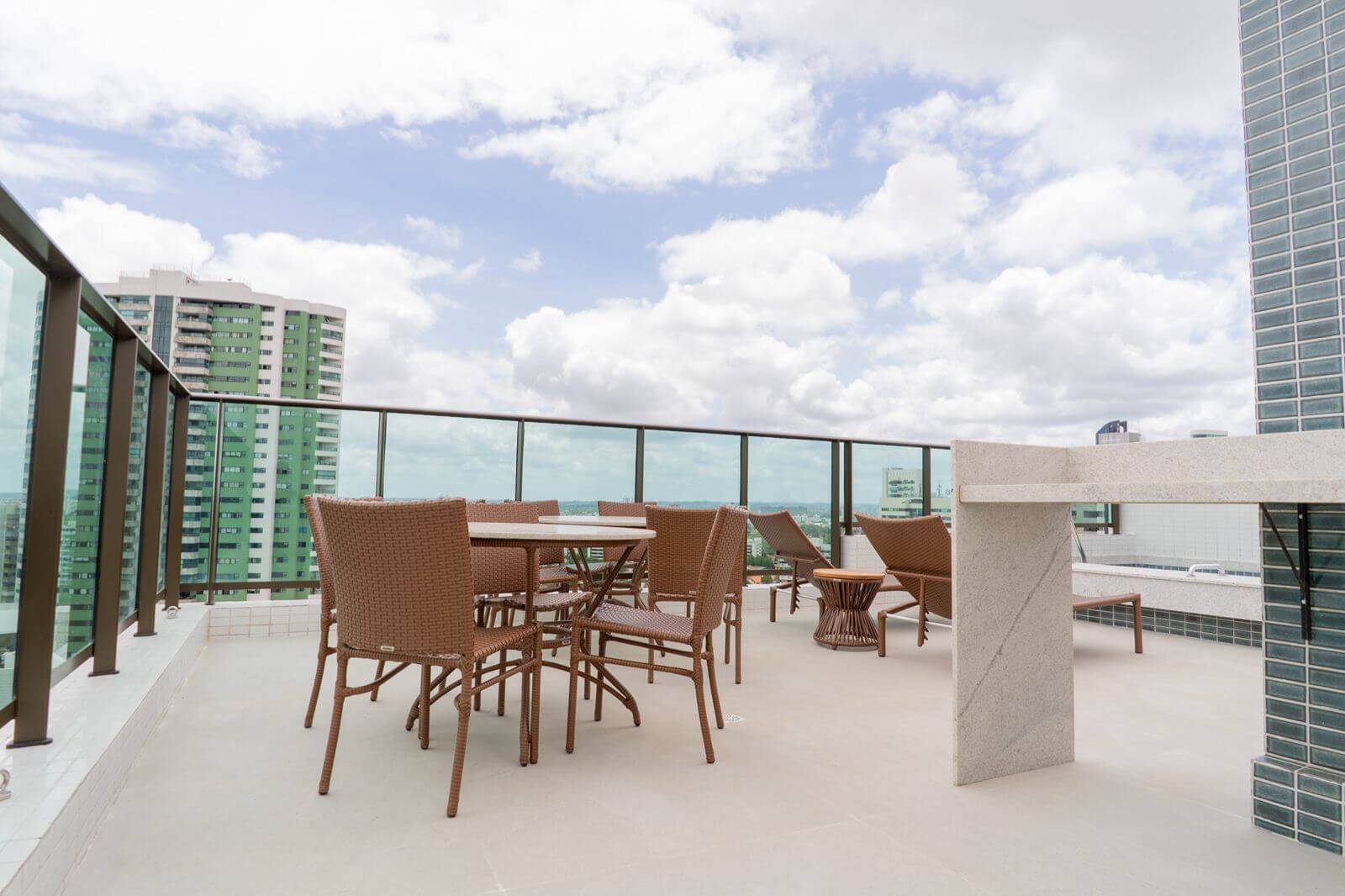 Além disso, acabamento alto padrão, porcelanato tanto nas áreas comuns e no apartamento, Preparação para Aquecedor de Passagem, Preparação para Ar Split na Sala, Esquadrias de Alumínio Anodizado, Vidros Verdes.