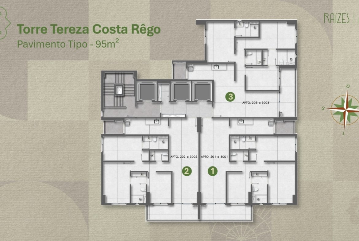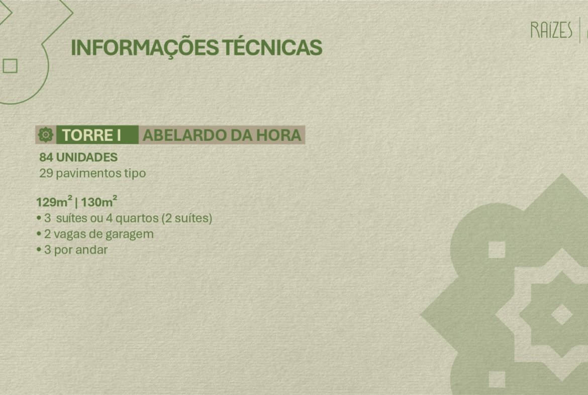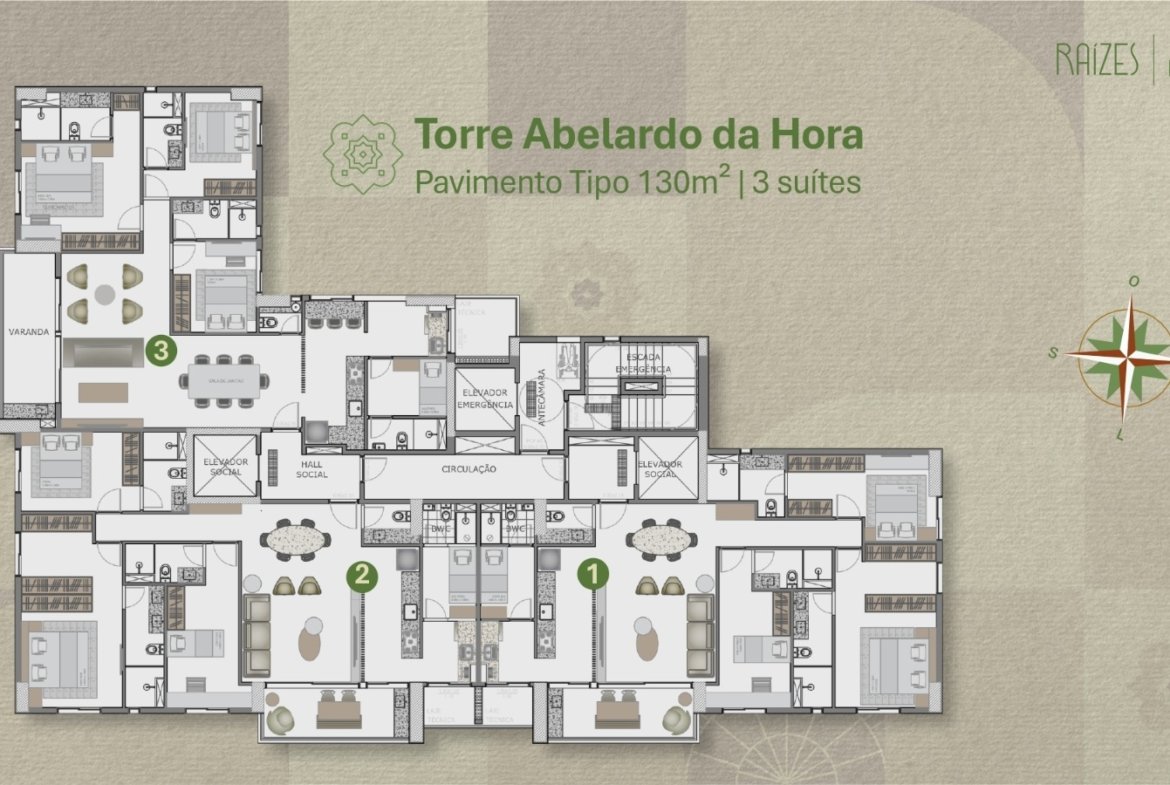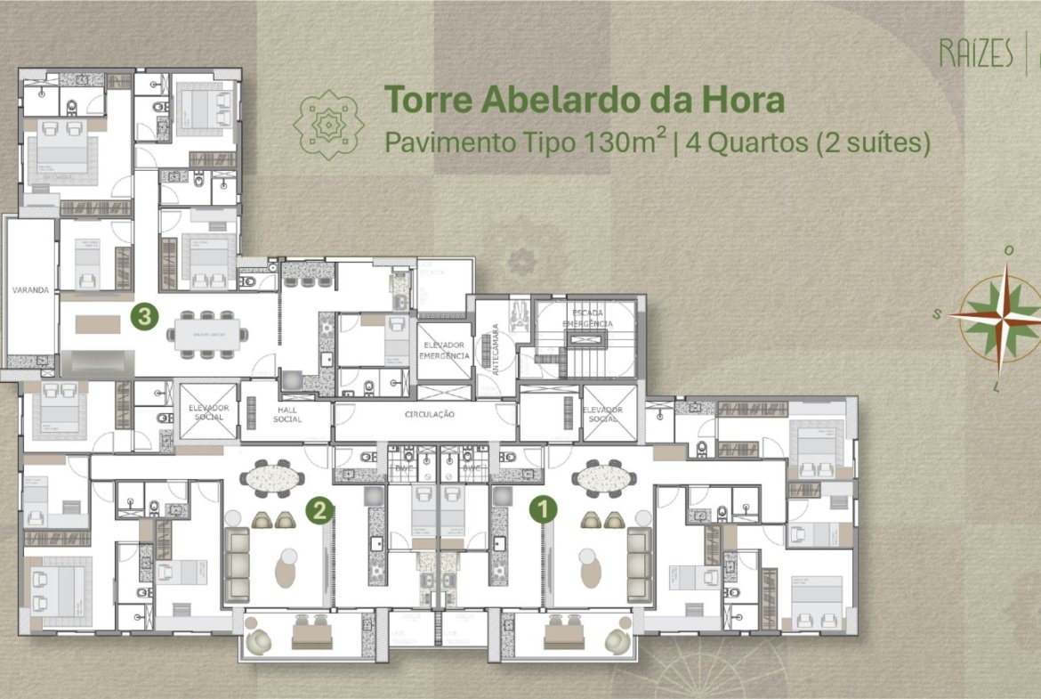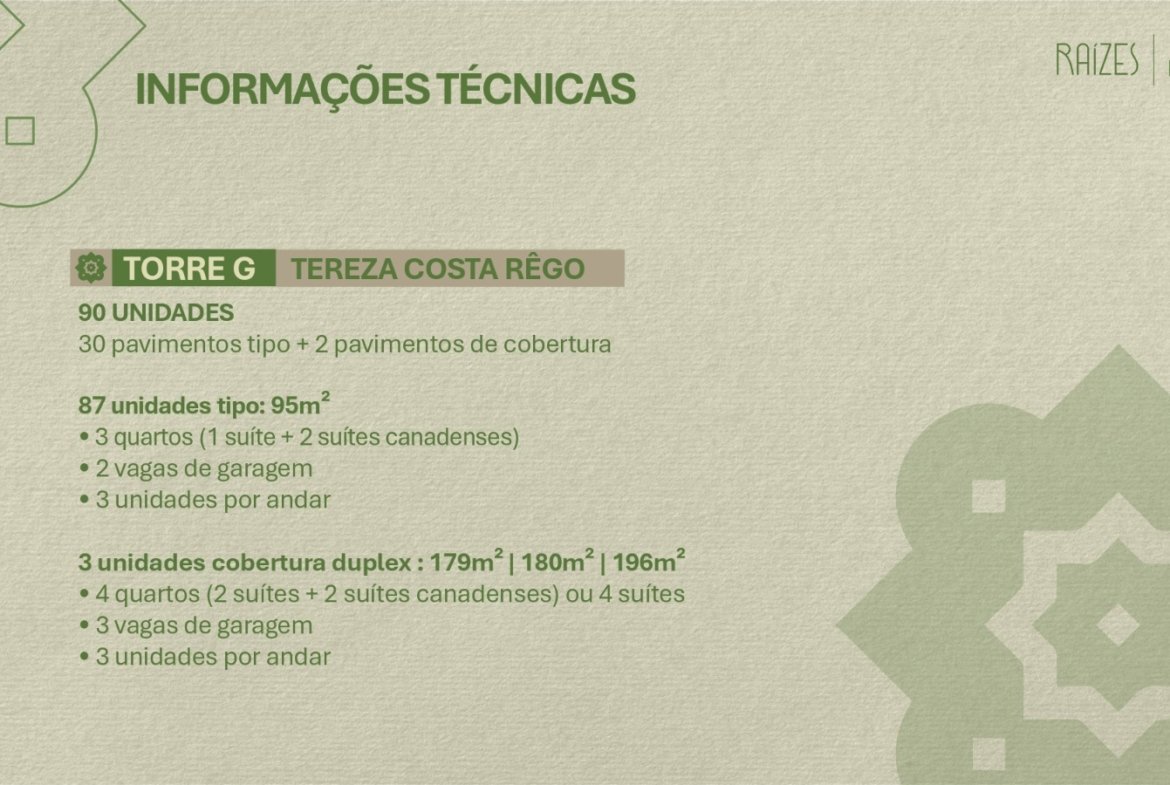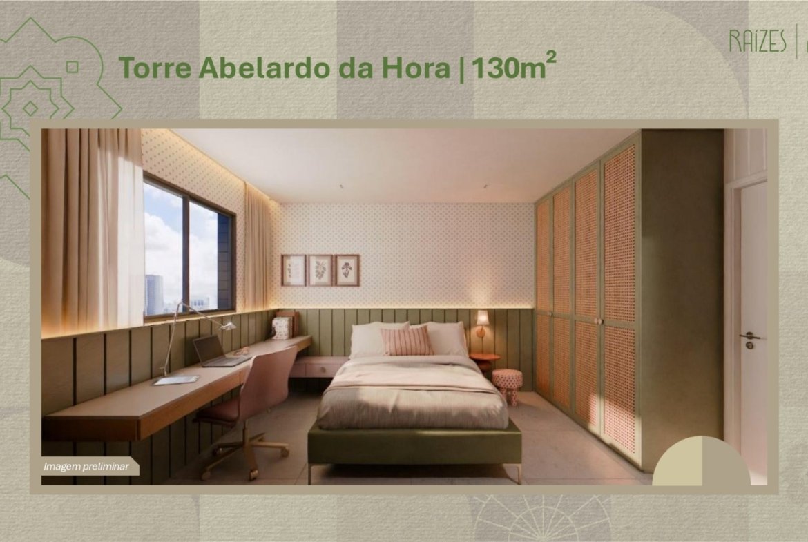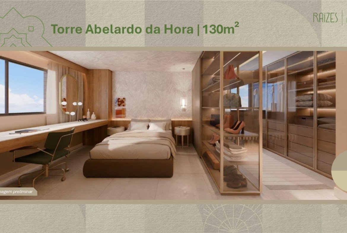 O Raízes agora se expande com duas torres exclusivas, batizadas em homenagem a grandes nomes da arte pernambucana. Primeiramente, temos a Torre Tereza Costa Rêgo (95m²), que possui a mesma planta do aclamado apartamento decorado. Além disso, o projeto conta com a Torre Abelardo da Hora (130m²). Esta última oferece flexibilidade total, pois você decide, no momento da compra, se deseja uma planta com 3 ou 4 quartos.