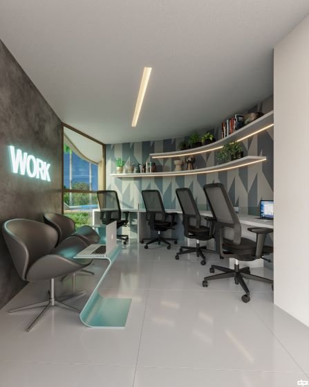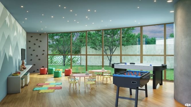 O condomínio é completo, pensado para toda a família. Entre os itens de lazer, você encontra piscina adulto e infantil, terraço gourmet, brinquedoteca, coworking. Lounge, deck, campinho, playground, pet place, salão gourmet e academia equipada. Para sua segurança e comodidade, o edifício dispõe de portaria 24h, gerador, central de gás, antena coletiva e 2 elevadores para apenas 3 apartamentos por andar.