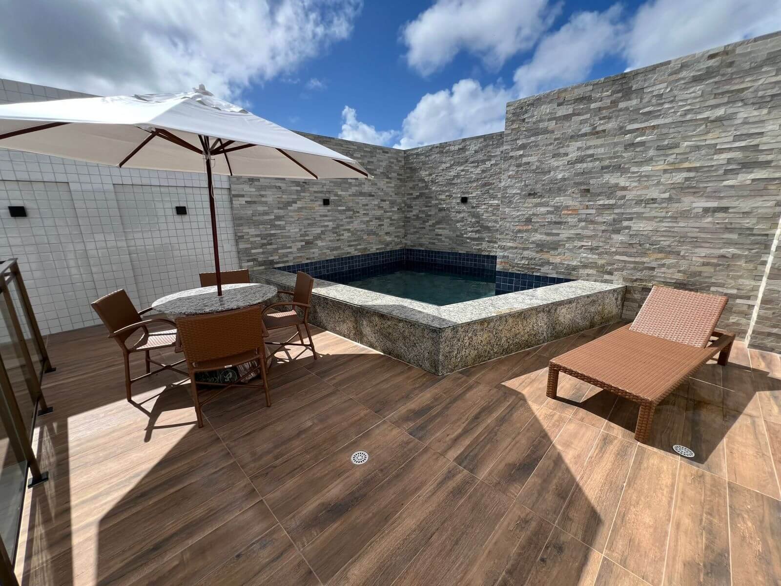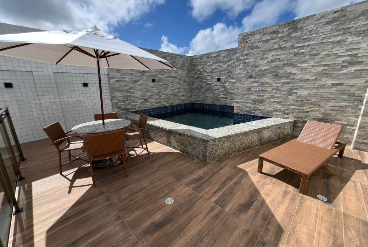 Dispõe de Àrea de Lazer com Piscina, Deck, Apoio da Piscina, Ducha, Terraço na Cobertura, Espaço para Playground, Wc masculino e feminino para PNE.