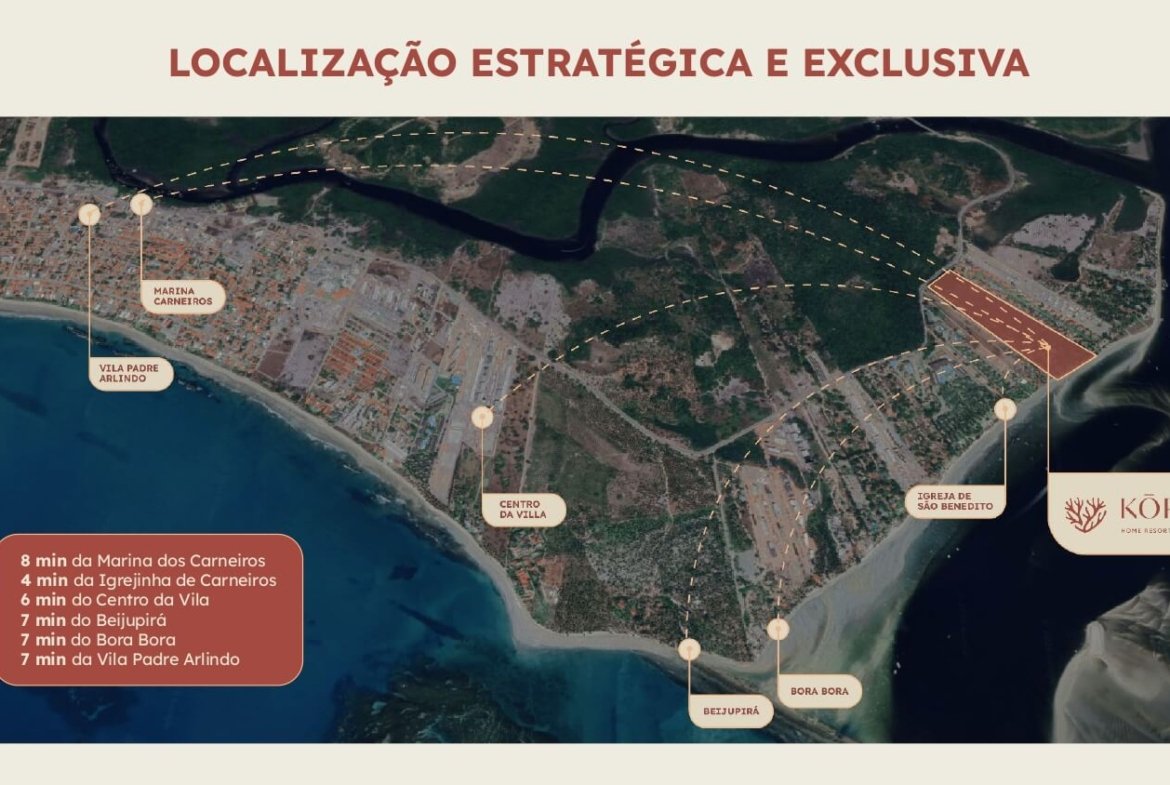 Se você busca Apartamento a Venda na Praia dos Carneiros Kora Home Resort, descubra um empreendimento que redefine luxo, privacidade e valorização imobiliária no litoral pernambucano. Localizado na paradisíaca Praia dos Carneiros, o projeto ocupa a área mais cobiçada da região e oferece uma combinação rara entre natureza preservada e infraestrutura de alto padrão.