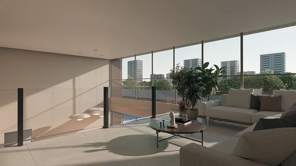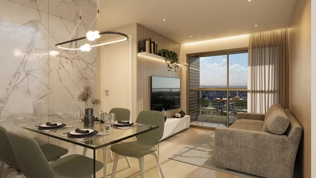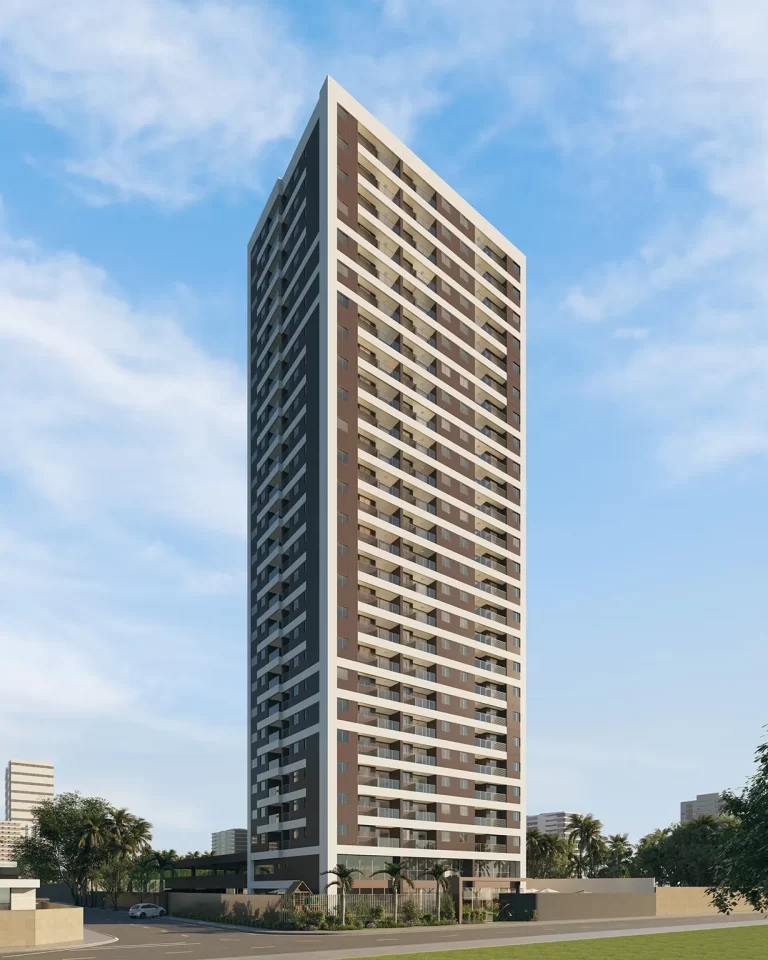 O empreendimento conta com 24 pavimentos e oferece unidades de 2 e 3 quartos, incluindo 1 suíte, com áreas que variam de 53,44m² a 70m². Todas as plantas têm varanda, garantindo mais ventilação e luminosidade ao ambiente.
