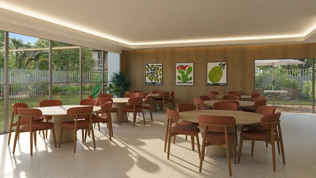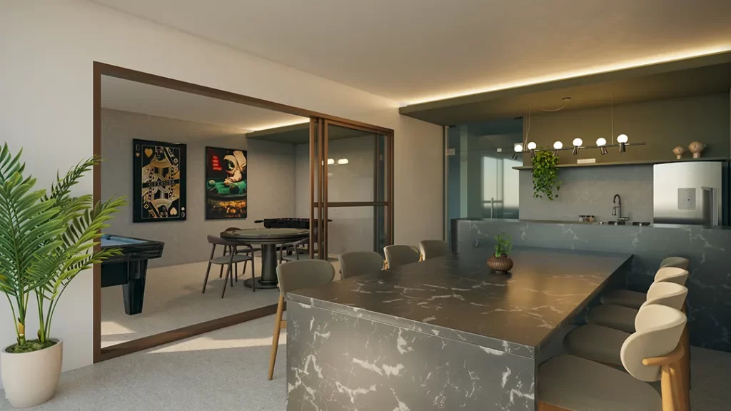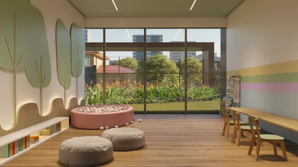 O projeto ainda traz praticidade ao dia a dia com coworking, mini market e espaço para delivery. Já para as famílias, há brinquedoteca, playground, mini campo e áreas exclusivas para pets, como petplace e petwash.