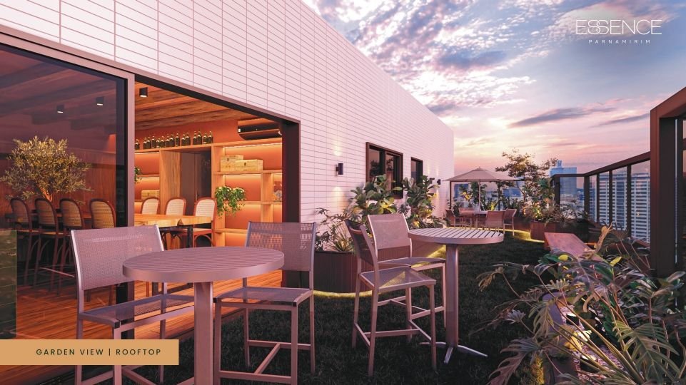 Imagine desfrutar de uma área de lazer completa e equipada, localizada na cobertura, com uma vista panorâmica do Parnamirim. No Essence, você encontra: