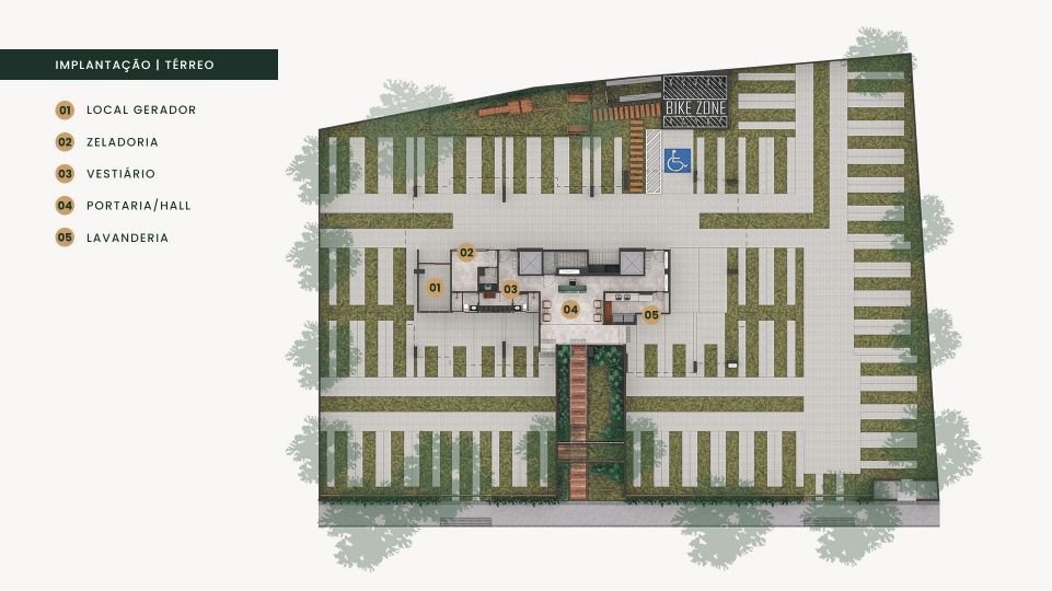 O empreendimento foi projetado para facilitar o seu dia a dia. Por isso, oferece vagas de garagem fixas e, pensando no futuro, disponibiliza tomadas para carregamento de veículos elétricos. No térreo, você ainda conta com comodidades como lavanderia, bicicletário, pet wash e um self market, trazendo a conveniência para dentro de casa.