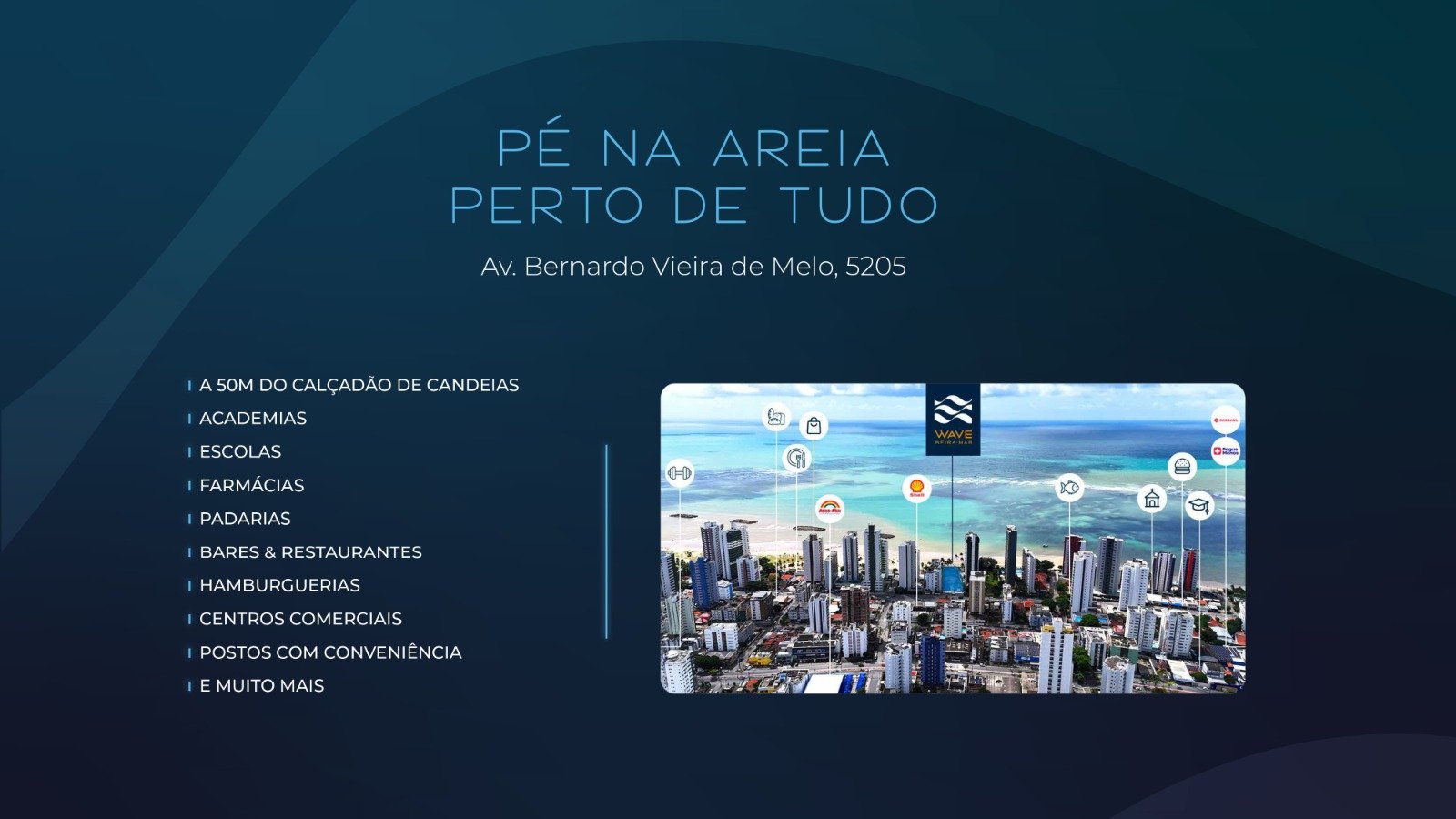 Descubra o Apartamento a Venda Wave Beira Mar de Candeias, um empreendimento exclusivo e assinado, idealizado pela Poupec em comemoração aos seus 30 anos. Este é o lugar perfeito para quem busca a sofisticação de um projeto arquitetônico único, assinado por Anderson Vespasiano, com interiores de Romero Duarte e paisagismo de Márcia Lima. Portanto, você terá o privilégio de viver com o mar aos seus pés, em uma localização estratégica na Av. Bernardo Vieira de Melo, a apenas 50 metros do calçadão de Candeias.