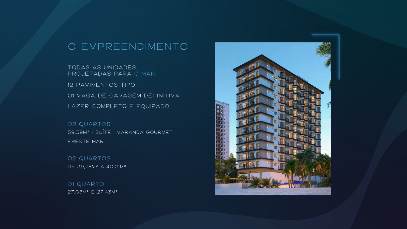 O Wave Beira Mar foi projetado para oferecer uma experiência de vida inigualável. Afinal, todas as unidades possuem vista para o mar, garantindo que você acorde todos os dias com a brisa e a energia do oceano. O empreendimento conta com 12 pavimentos tipo e oferece diversas opções de plantas para atender às suas necessidades.