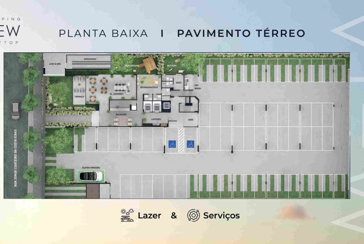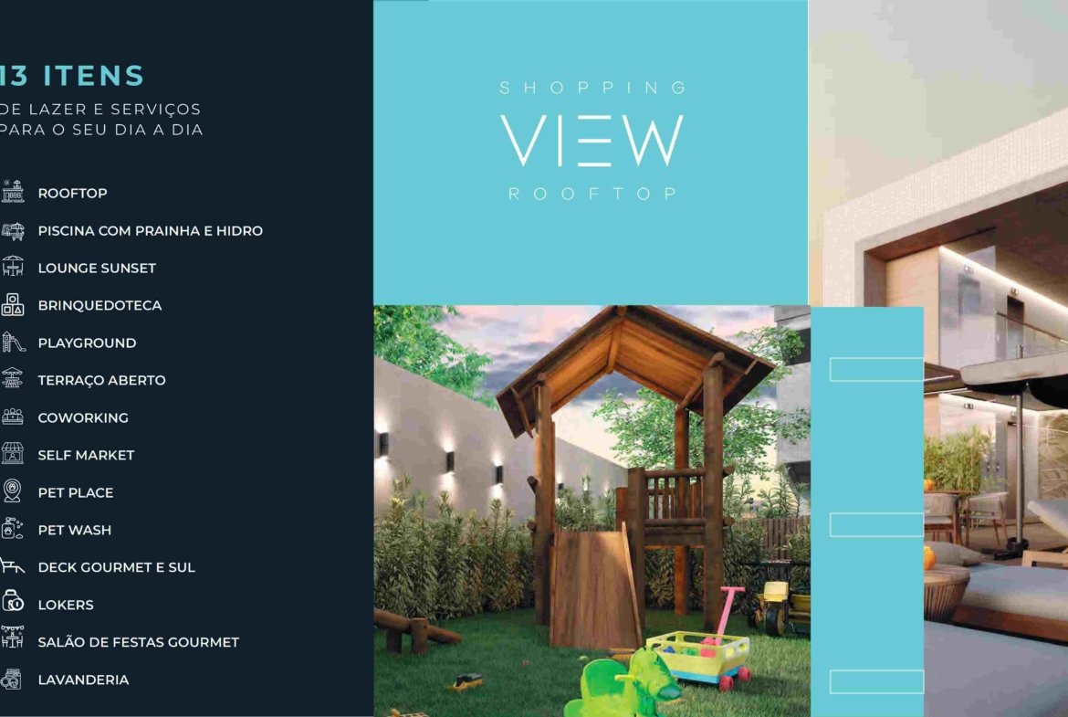 Tem uma ampla área de lazer composta de Piscina com Raia Deck e Vista Panorâmica, Deck com Espaço Gourmet, Lounge Sunset no Rooftop, Brinquedoteca, Playgroud, Sala de Reuniões, Coworking, Self Market, Espaço Podcast, Espaço Beauty, Terraço Aberto, Lavandeira, Salão de Festas, Petplace, Pet Whash, Lockers para E-comerce e Iphood.