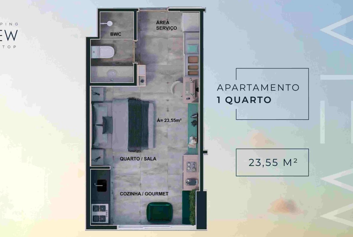 Apartamento Studio a Venda em Boa Viagem Shopping View, Recife, Studio, 23,55m², Nascente, Quarto, , Wc, Sala, Cozinha, área de serviço, vaga de estacionamento rotativa.