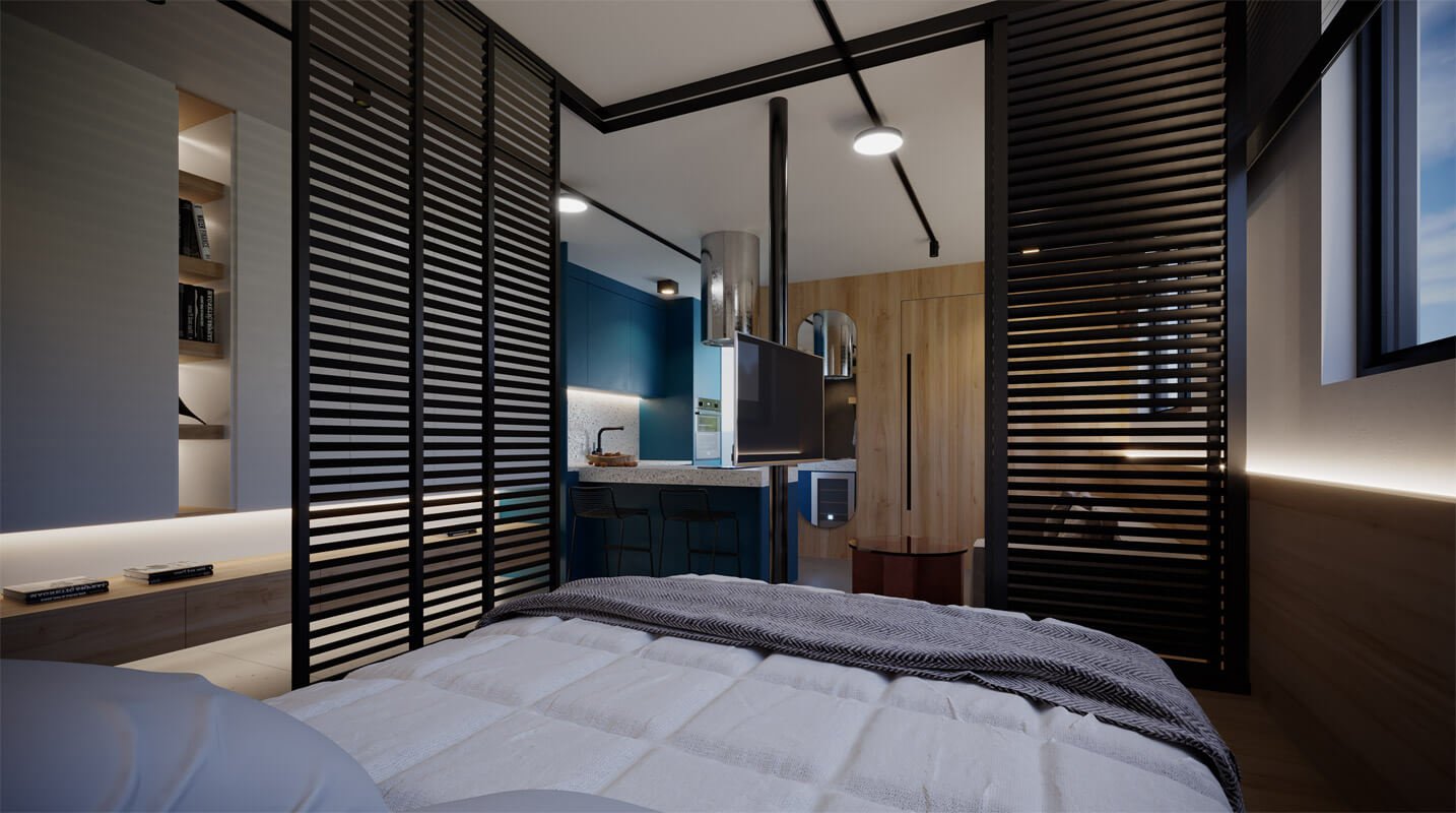 O Apartamento possui 30m², acabamento de revestimento em Cerâmica, Sala, Cozinha Americana, Quarto, WC Social, Integrados, Preparação para Aquecedor de Passagem e 1 Vaga de Garagem Rotativa.