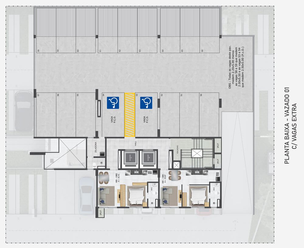 No 1° Vazado 2 unidades de Apartamentos Studio e Vagas de Garagem.